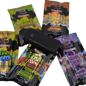 | Strain | Any Indica, Sour Explosion, Sour Funny Candies, Tangy Treats, Grape God, Creme Brulee, Any Hybrid, Fruit Chews, Citrus Splash, Watermelon, Fruity Cereal Loop, O' Sweets, Gobstopper, Any Sativa, Birthday Cake, Jamaican Rum Punch, Sweet & Tart, Fruit Punch, Tropical Passionfruit, Lemon Head |